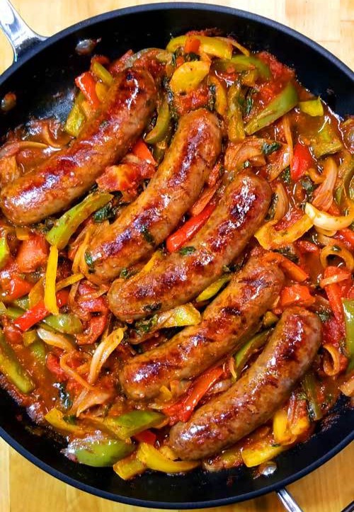 Return sausage to skillet with the vegetables. Reduce heat to low, and simmer 15 minutes, or until the sauce has thickened.