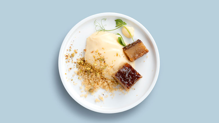 Served with vanilla ice cream, toffee sauce & a peanut crumble