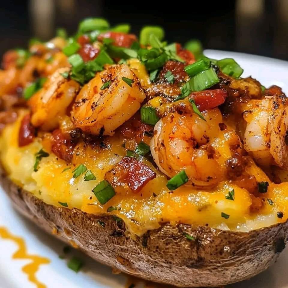 Load the Potatoes: Fluff the insides of the potatoes with a fork. Top each potato with the Cajun shrimp mixture, followed by shredded cheddar cheese, sour cream, green onions, and any additional seasonings.