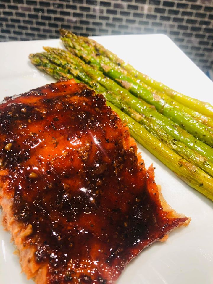 Pour glaze over the salmon