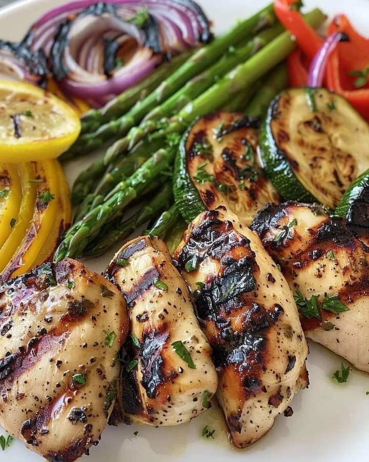 Plate the Dish: Transfer the grilled chicken and vegetables to a serving platter.