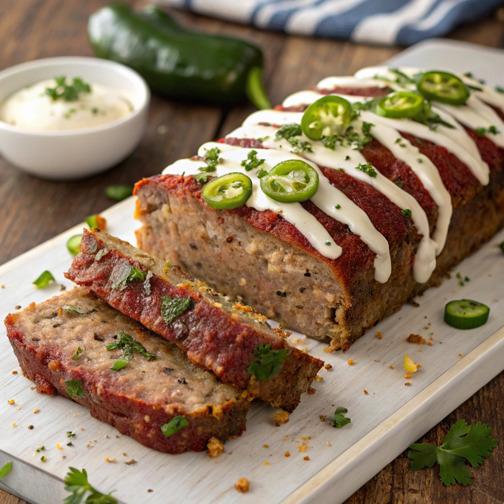 Allow the meatloaf to rest for 10 minutes before slicing. Drizzle the creamy ranch mixture over the top and garnish with additional chives, if desired. Enjoy this smoky and flavorful meatloaf!